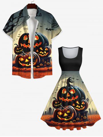 Halloween Dresses > Plus Size Halloween Costume Pumpkin Latern Bat Moon Tree Print 1950s Vintage Dress