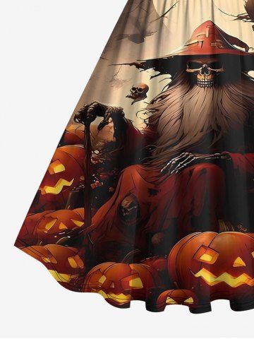 Halloween Dresses > Plus Size Halloween Costume Pumpkin Latern Moon Skull Scarecrow Print 1950s Vintage Dress