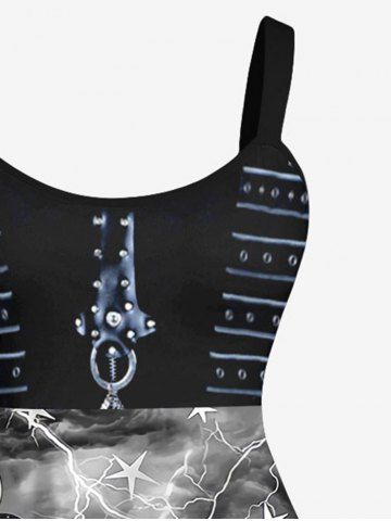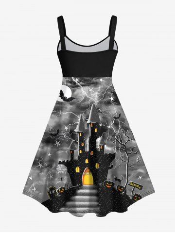 Plus Size Halloween Costume Pumpkin Lightning Bat Castle Print Tank Dress - Black - Xs