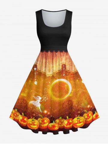 Plus Size Halloween Costume Pumpkin Moon Star Tassel Wizard Galaxy Glitter 3D Print 1950s Vintage Dress - Multi-a - 3x