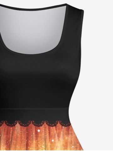 Plus Size Halloween Costume Pumpkin Moon Star Tassel Wizard Galaxy Glitter 3D Print 1950s Vintage Dress - Multi-a - 5x