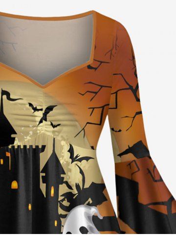 Plus Size Halloween Costume Pumpkin Mummy Ghost Bat Print Flare Sleeve High Low Dress - Multi-a - M