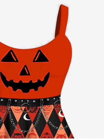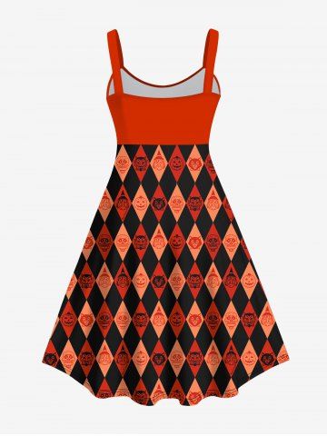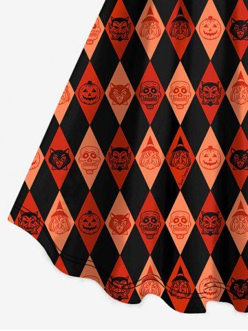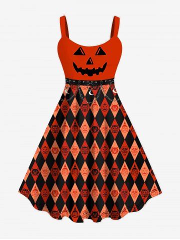 M*****e5Plus Size Halloween Costume Pumpkin Rhombus Colorblock Print Tank DressColor: DARK ORANGE Size: 5XI wasn’t sure about this one but I’m sooo glad I bought it! It’s much cuter on. Material is spot on and is going to look fabulous for the kids downtown trick or treat.