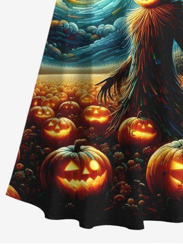 Halloween Dresses > Plus Size Halloween Costume Pumpkin Scarecrow Bat Moon Colorful Print Cold Shoulder Crisscross Maxi Dress
