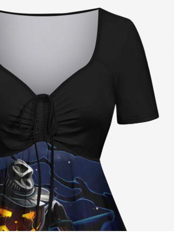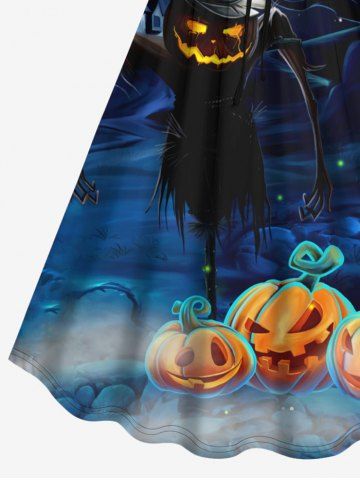 Plus Size Halloween Costume Pumpkin Scarecrow Star Tree Print Cinched Dress - Multi-a - 3x