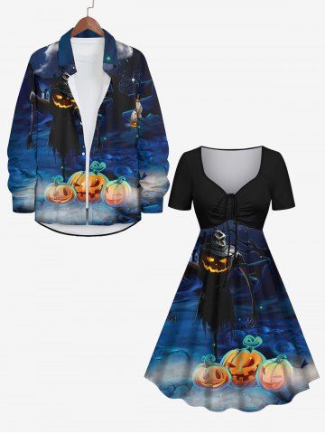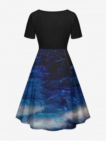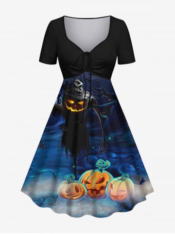 Halloween Dresses > Plus Size Halloween Costume Pumpkin Scarecrow Star Tree Print Cinched Dress