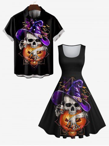 Halloween Dresses > Plus Size Halloween Costume Pumpkin Skull Bat Hat Print 1950s Vintage Dress
