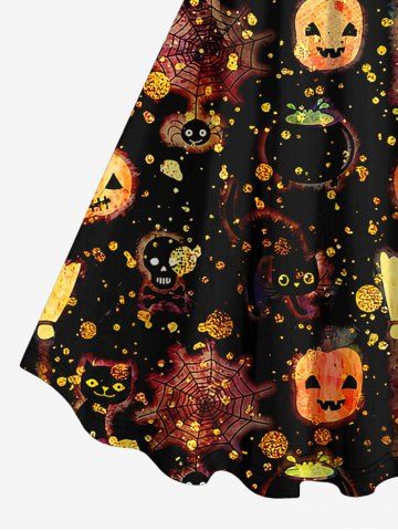 Halloween Dresses > Plus Size Halloween Costume Pumpkin Spider Web Glitter Print Tank Dress