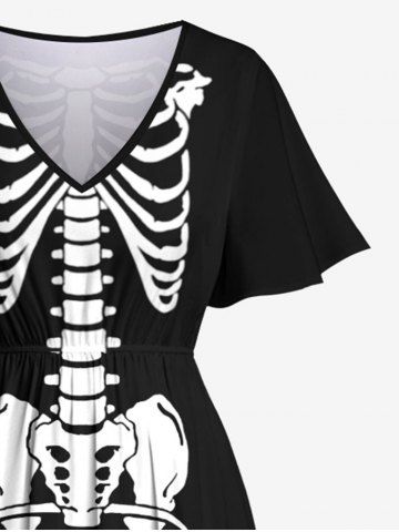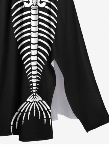 Plus Size Halloween Costume Skeleton Mermaid Bone Print Split Midi Dress - Black - 3x