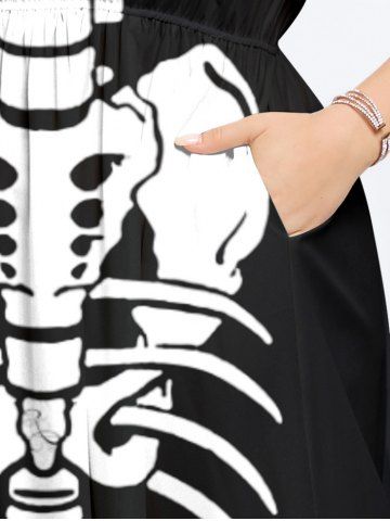 Plus Size Halloween Costume Skeleton Mermaid Bone Print Split Midi Dress - Black - 6x