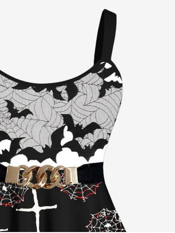 Plus Size Halloween Costume Skull Cross Bat Spider Web Print Tank Dress - Black - Xs