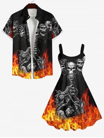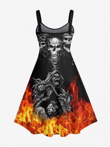 Halloween Dresses > Plus Size Halloween Costume Skulls Fire Flame Print Tank Dress