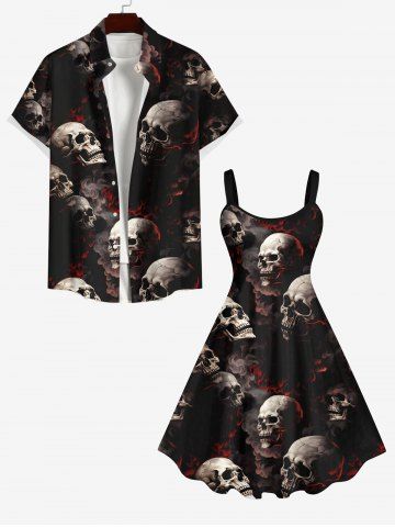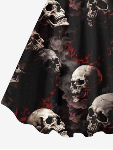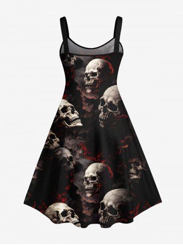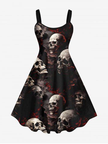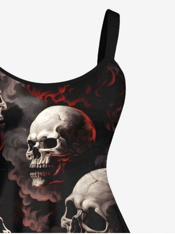 Plus Size Halloween Costume Skulls Fog Print Tank Dress - Black - 4x