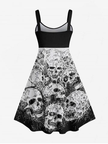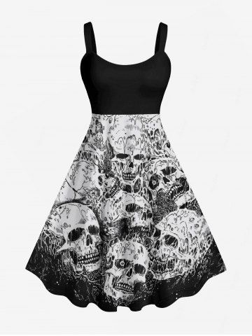 Plus Size Halloween Costume Skulls Print Tank Dress - Black - 3x