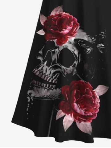 Plus Size Halloween Costume Skulls Rose Flower Print Cold Shoulder Crisscross Maxi Dress - Black - 3x
