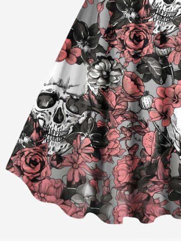 Plus Size Halloween Costume Skulls Rose Flowers Print Tank Dress