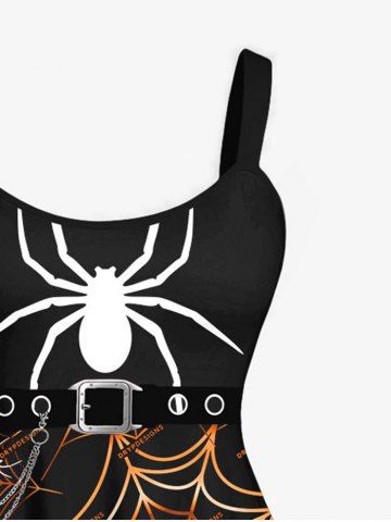 Plus Size Halloween Costume Spider Web Buckle Belt 3D Print Tank Dress - Black - Xs