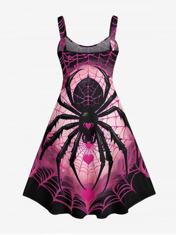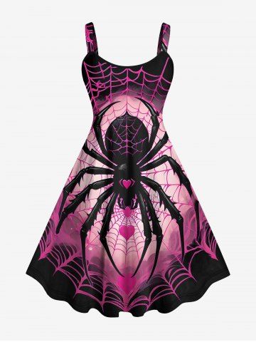 Halloween Dresses > Plus Size Halloween Costume Spider Web Heart Ombre Print Tank Dress
