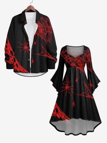 Halloween Dresses > Plus Size Halloween Costume Spider Web Insect Print Flare Sleeve High Low Dress