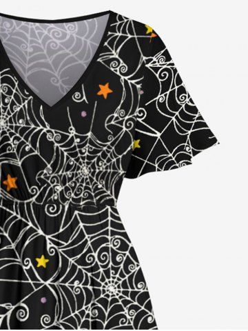 Plus Size Halloween Costume Spider Web Moon Star Print Split Midi Dress - Black - Xs