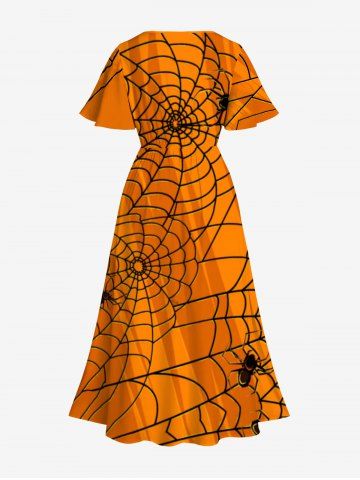 Plus Size Halloween Costume Spider Web Print Split Midi Dress - Orange - S