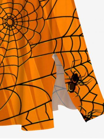 Plus Size Halloween Costume Spider Web Print Split Midi Dress - Orange - 3x