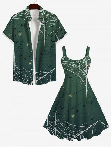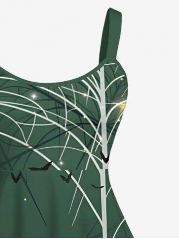 Plus Size Halloween Costume Spider Web Star Bat Print Tank Dress - Green - 4x