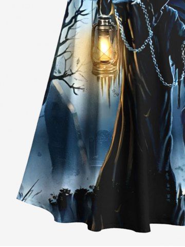 Halloween Dresses > Plus Size Halloween Costume Tree Wizard Tomb Lantern Print Cold Shoulder Crisscross Maxi Dress