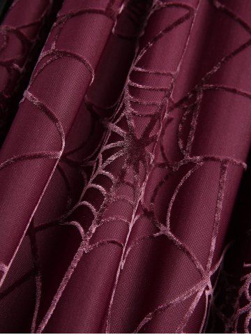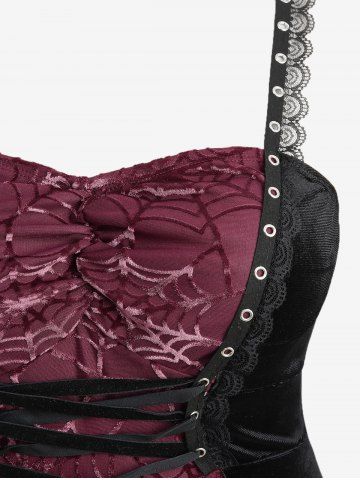 Halloween Dresses > Plus Size Halloween Grommet Lace-up Spider Web Flocking Scalloped Lace Trim Velvet Tank Dress