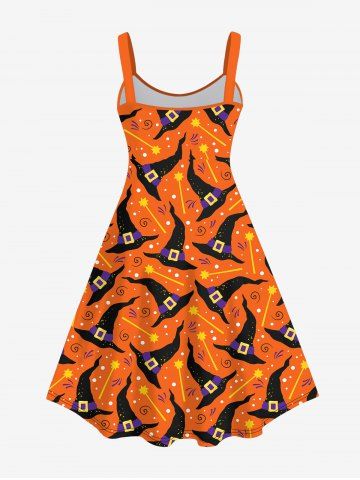 Plus Size Halloween Hat Magic Wand Belt 3D Print Tank Dress - Orange - M