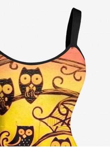 Plus Size Halloween Hat Wizard Owl Bat Spider Web Print Tank Dress - Yellow - Xs
