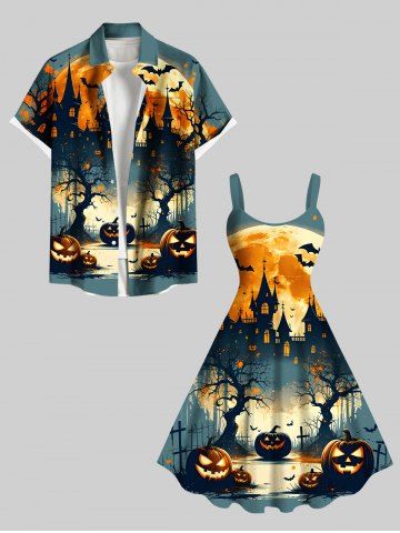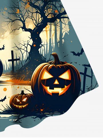 Plus Size Halloween Moon Pumpkin Bat Trees Cross Castle Print Tank Dress - Green - M