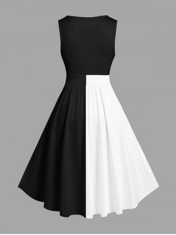 Halloween Dresses > Plus Size Halloween Poker Skull Heart Two Tone Colorblock Print 1950s Vintage Dress