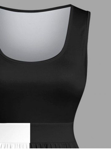 Plus Size Halloween Poker Skull Heart Two Tone Colorblock Print 1950s Vintage Dress - Black - 3x