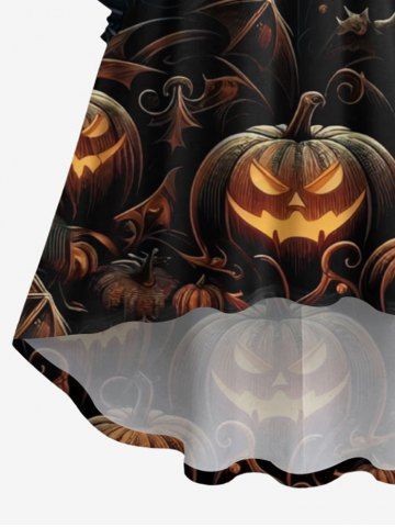 Plus Size Halloween Pumpkin Bat Floral Pattern Print Ruched Flare Sleeves High Low Dress - Black - Xs