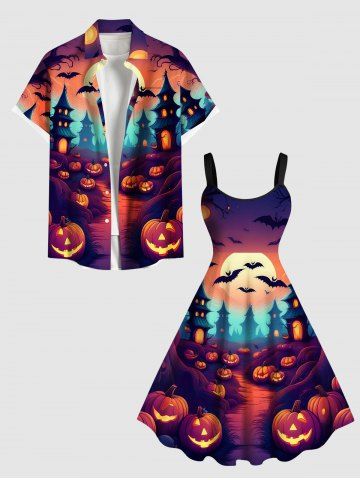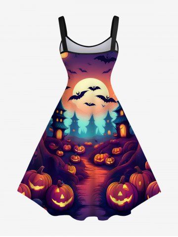 Plus Size Halloween Pumpkin Bat Moon Castle Print Tank Dress - Concord - 1x