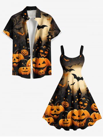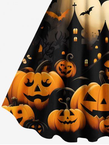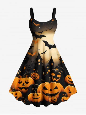 Plus Size Halloween Pumpkin Bat Moon Print Tank Dress - Black - 5x