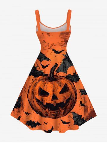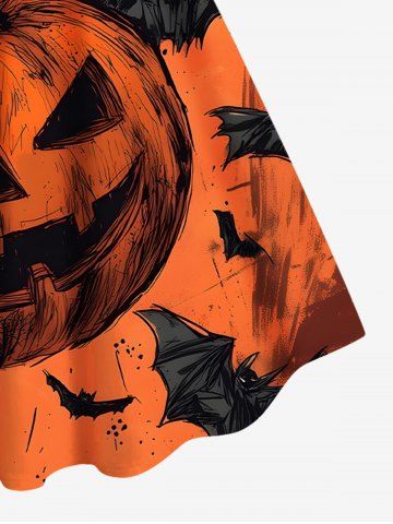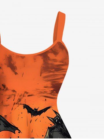 Plus Size Halloween Pumpkin Bat Print Tank Dress - Orange - 3x