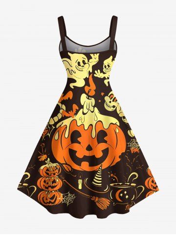 Halloween Dresses > Plus Size Halloween Pumpkin Bat Skull Ghost Print Tank Dress