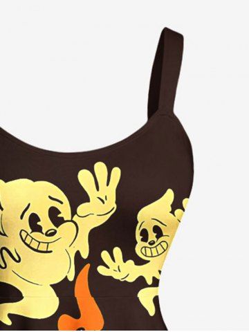Plus Size Halloween Pumpkin Bat Skull Ghost Print Tank Dress - Black - 5x