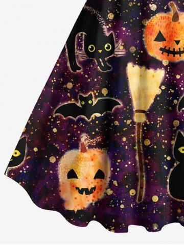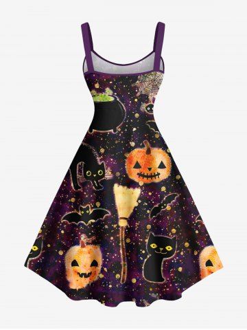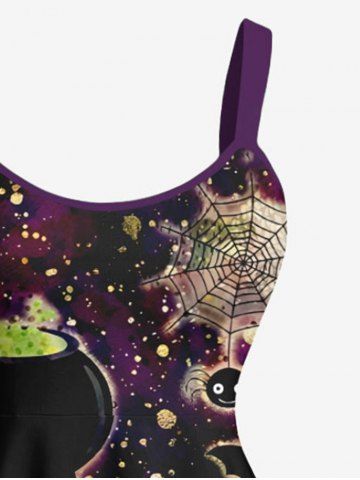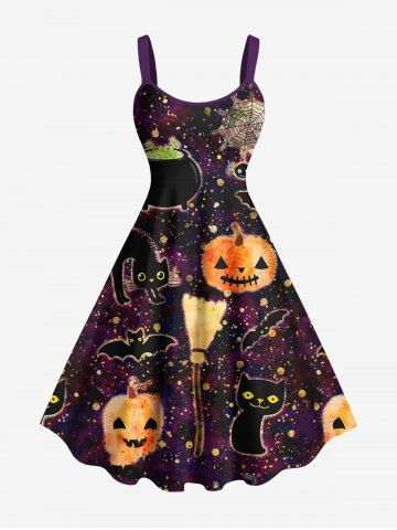 Plus Size Halloween Pumpkin Bat Spider Web Skull Cat Print Tank Dress - Concord - 5x