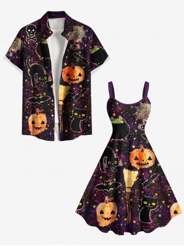 Halloween Dresses > Plus Size Halloween Pumpkin Bat Spider Web Skull Cat Print Tank Dress