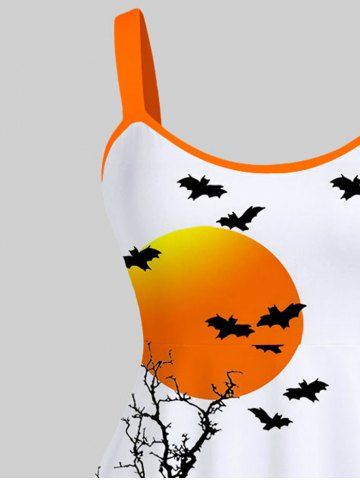 Plus Size Halloween Pumpkin Bat Tree Moon Wizard Print Tank Dress - White - M