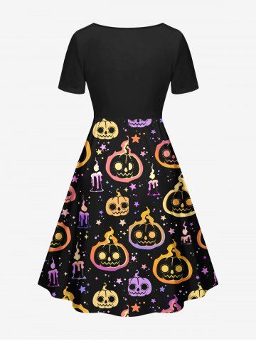 Plus Size Halloween Pumpkin Candles Star Print Cinched Dress - Black - Xxs