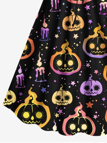 Halloween Dresses > Plus Size Halloween Pumpkin Candles Star Print Cinched Dress