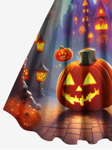 Halloween Dresses > Plus Size Halloween Pumpkin Castle Street Light Print Tank Dress
