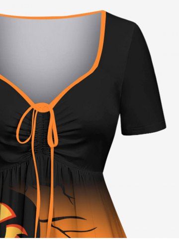 Plus Size Halloween Pumpkin Cross Tree Colorblock Print Cinched Dress - Orange - 3x