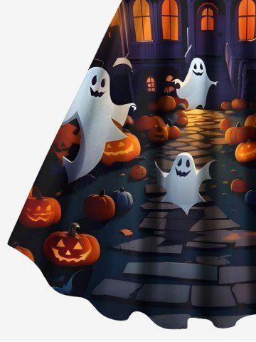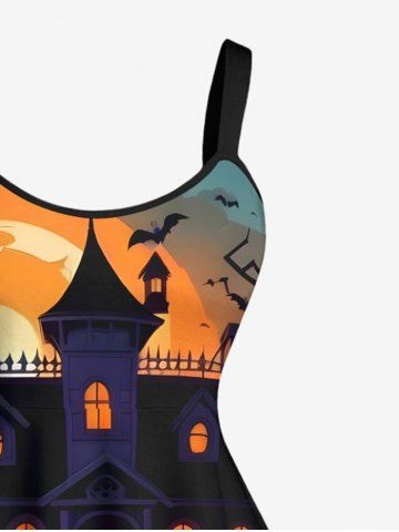 Plus Size Halloween Pumpkin Ghost Moon Bat Tree Print Tank Dress - Black - M