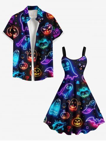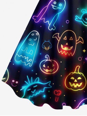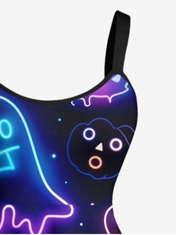 Halloween Dresses > Plus Size Halloween Pumpkin Ghost Neon 3D Print Tank Dress