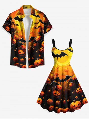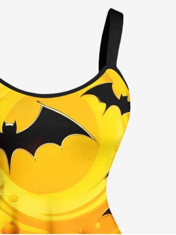 Plus Size Halloween Pumpkin Lantern Bat Print Tank Dress - Orange - 1x